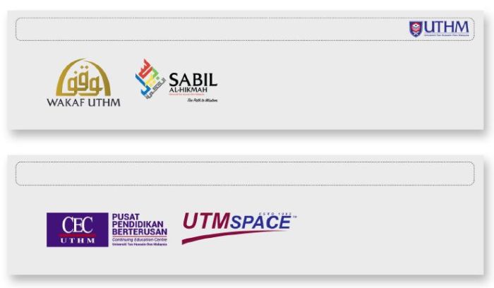 Nama atau logo PTj/penganjur bersama perlu berada di sebelah bawah.